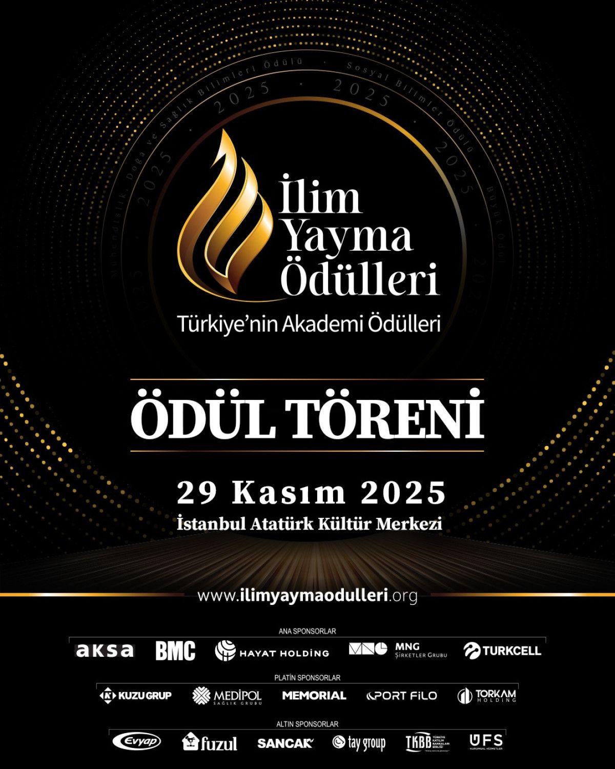 29 Kasım 2025 Cumartesi günü saat 19.00’da İstanbul Atatürk Kültür Merkezi’nde gerçekleştirilecek ödül törenine, Cumhurbaşkanı Recep Tayyip Erdoğan’ın yanı sıra; akademi, siyaset, iş dünyası, kültür ve medya dünyasından çok sayıda seçkin davetli katılacak.