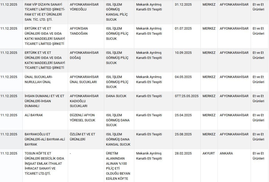 Ayrıca Ankara’nın Akyurt ilçesinde, yüzde 100 piliç eti olduğu beyan edilen köftede, mekanik ayrılmış kanatlı et bulunduğu tespit edildi.