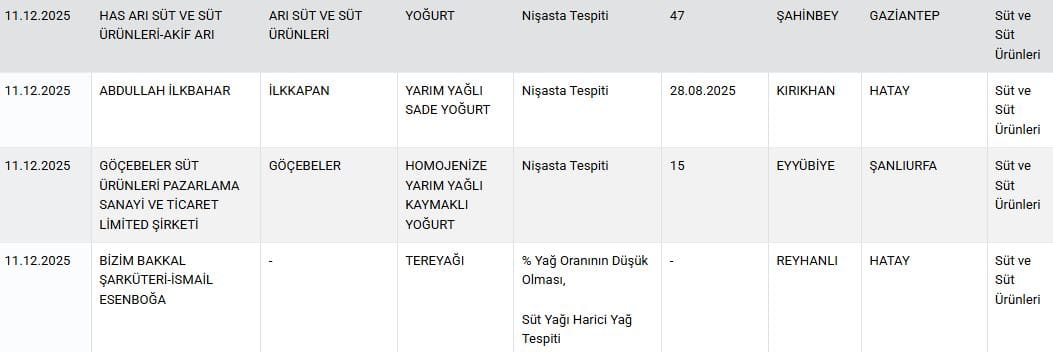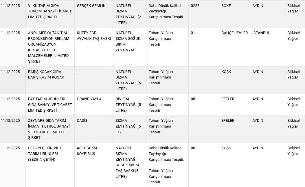 Listeye 2’si sağlığı tehlikeye düşürecek ürün olmak üzere toplam 36 yeni ürün daha eklendi. Listede zeytinyağı, yoğurt ve bal gibi ürünler yer aldı.